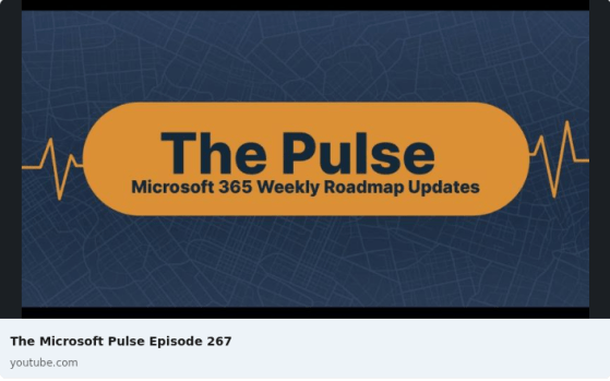 Episode 267 of the Microsoft 365 Pulse Roadmap webcast is now out on YouTube. Join Tamara Bredemus and Thomas Duff as we cover this week’s updates.