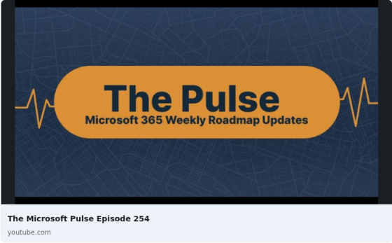 Episode 254 of the Microsoft 365 Pulse Roadmap webcast is now out on YouTube. Join Tamara Bredemus and Thomas Duff as we cover this week’s updates.