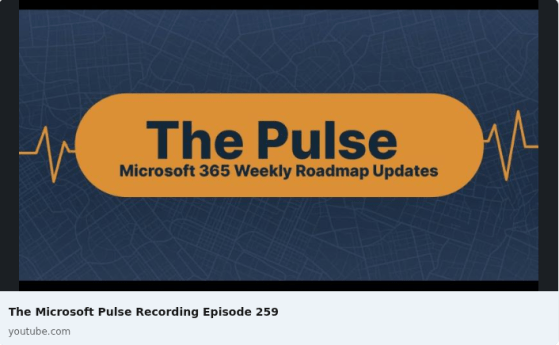 Episode 259 of the Microsoft 365 Pulse Roadmap webcast is now out on YouTube. Join Tamara Bredemus and Thomas Duff as we cover this week’s updates.