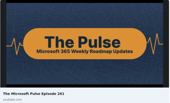 Episode 262 of the Microsoft 365 Pulse Roadmap webcast is now out on YouTube. Join Tamara Bredemus and Thomas Duff as we cover this week’s updates.