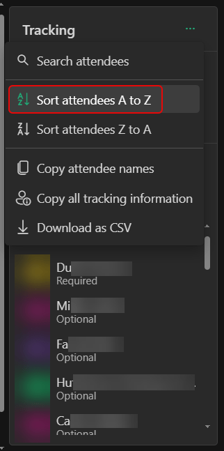Sorting the attendee list for Outlook on the web