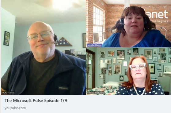Episode 177 of the Microsoft 365 Pulse Roadmap webcast is now out on YouTube. Join Jennifer Mason, Adam Ochs, Tamara Bredemus, and myself as we cover this week’s updates.