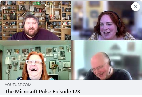 Episode 128 of the Microsoft 365 Pulse Roadmap webcast is now out on YouTube. Join Jennifer Mason, Adam Ochs, Tamara Bredemus, and myself as we cover this week’s updates.