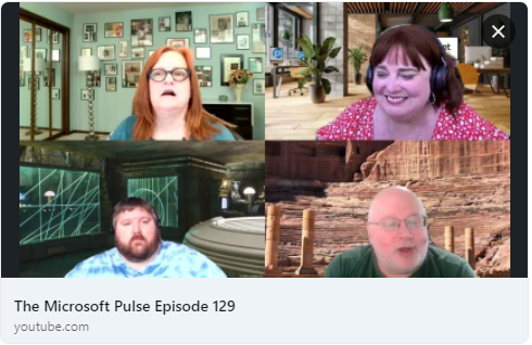 Episode 129 of the Microsoft 365 Pulse Roadmap webcast is now out on YouTube. Join Jennifer Mason, Adam Ochs, Tamara Bredemus, and myself as we cover this week’s updates.