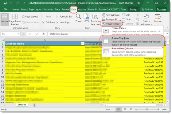 Freezing the Header row in Excel