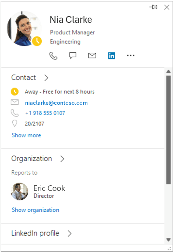 Classic Outlook: Retirement of people card expanded view