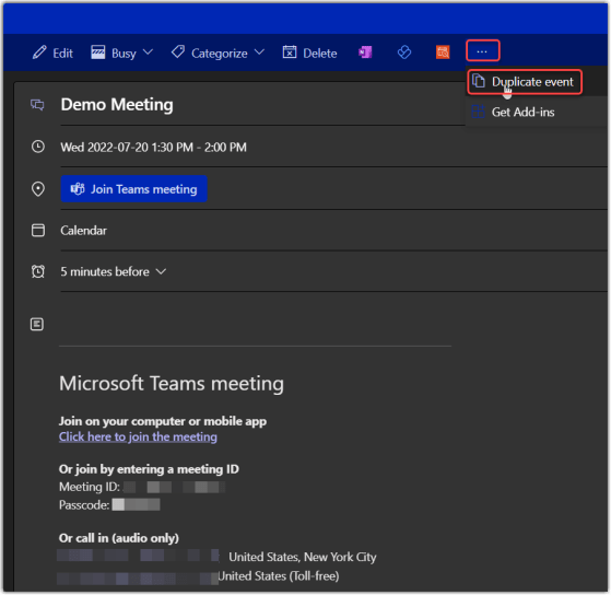 Duplicate an event in Outlook on the Web