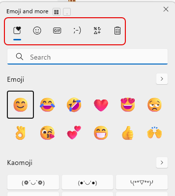 One of my work colleagues shared this tip with me, and I thought it was so good that I’ll pass it along to you. If you press the Window key + . (the period), you’ll get a cool Emoji pop-up screen along with some other useful clickable goodness. Here’s how that works…