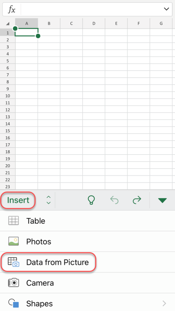 Using the Data In Picture feature in the Excel mobile app