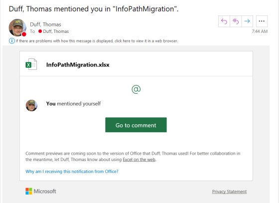 Getting notifications when adding comments to an Office file