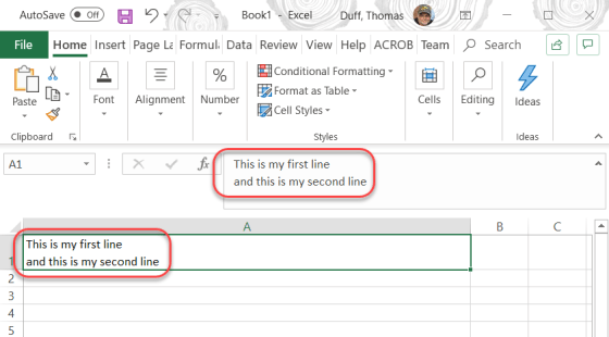To be honest, this tip is probably more for me so that I remember and don’t forget how it works. 🙂 There are times when I want to have multiple lines in a spreadsheet cell, and not just lines that wrap around. To get that hard linefeed, you just have to use ALT-Enter, and you’ll have a new line in your cell. Here’s what that looks like…