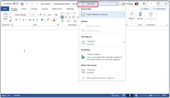 Using the Tell Me feature in Microsoft Office