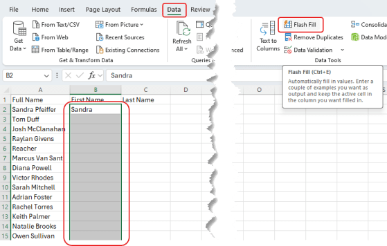 Using Flash Fill in Excel
