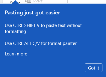 My wife (who does user adoption and training for Microsoft 365 software) ran across this new feature that popped up on her browser-based Word document the other day. Now you can use a keyboard shortcut to paste in plain text without having to use a drop-down menu to do so. Here’s how that works…