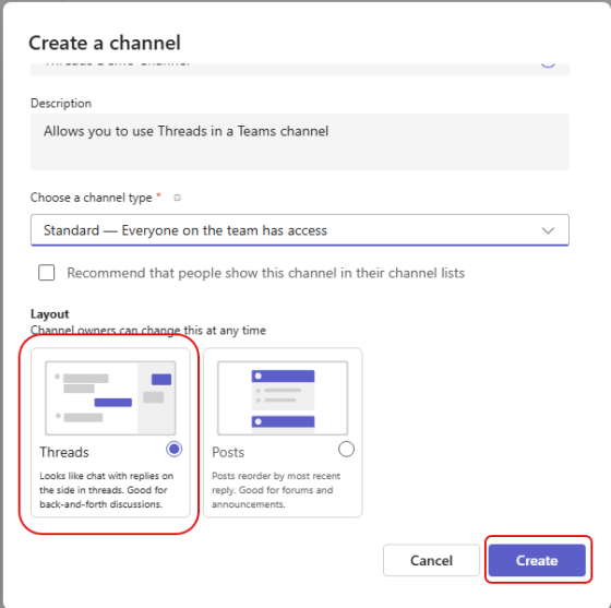 Using the new Threads channel format in Microsoft Teams