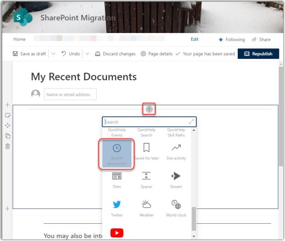 When you’re creating modern web pages in SharePoint Online, you have a number of options to have your page be customized to the person who is viewing it. One of those options is the Recent Documents web part, which shows the recent documents updated by the current user. Here’s how it works…
